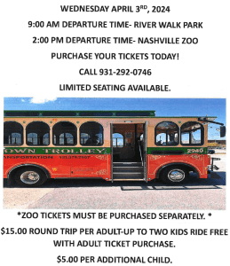 PURCHASE YOUR TICKETS TODAY BY CALLING 931-292-0746